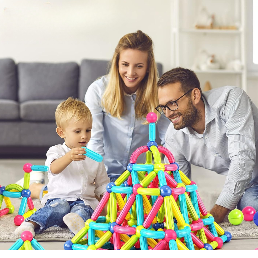 Los bloques magnéticos no solo entretienen a los niños, también crean momentos únicos para compartir en familia.